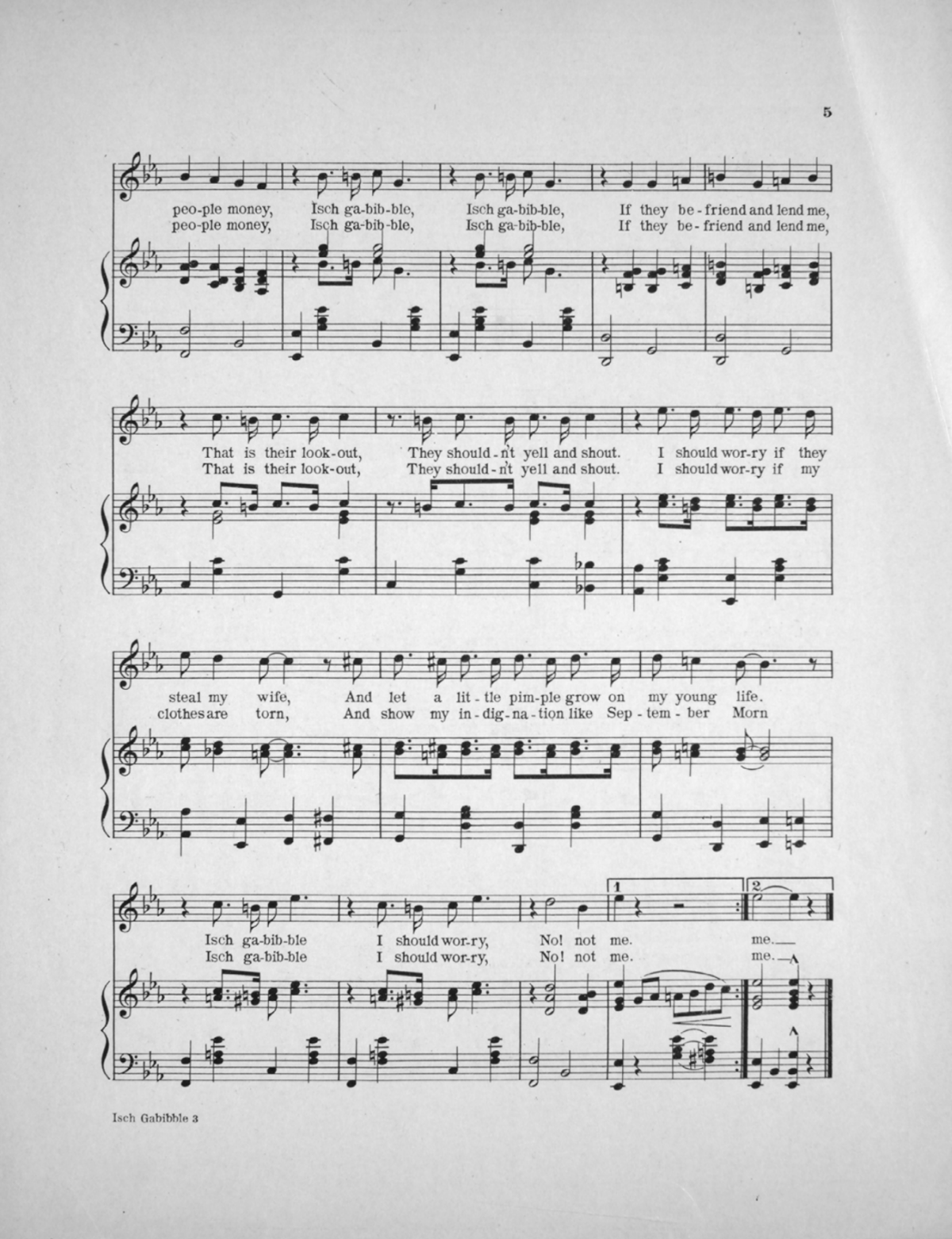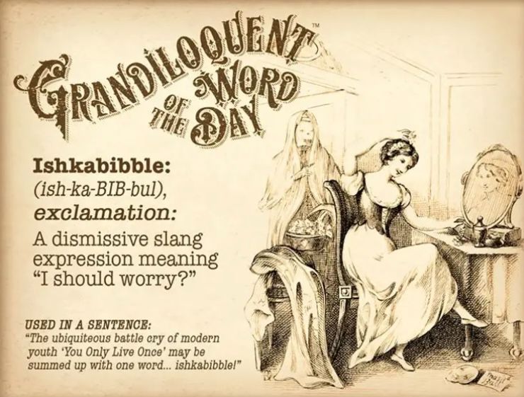 Some believe that "Ish Ka bibble" is a Yiddish phrase, but in reality it's a nonsense word that originated in a comedic song released in 1913 called "Isch Ga-Bibble," also known as "I Should Worry," a sentiment echoed in its refrain: "I never care or worry, Ish ga-bibble." Listen to an instrumental version of the song here.